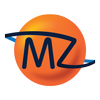 A logo with a large orange sphere in the background and the letters 'MWZ' in dark blue, surrounded by a blue curved line.